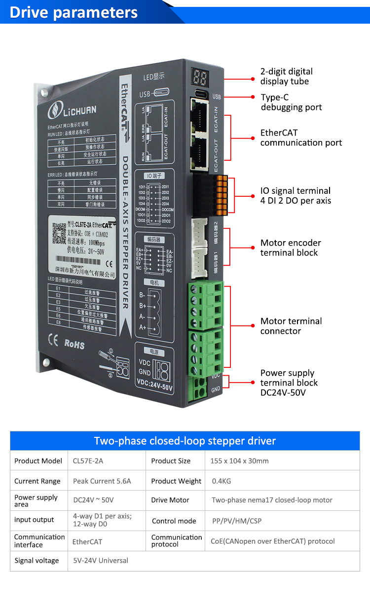 EtherCAT 2Phase Nema24 2-Axis DC ক্লোজড লুপ স্টেপার মোটর ড্রাইভার কিট