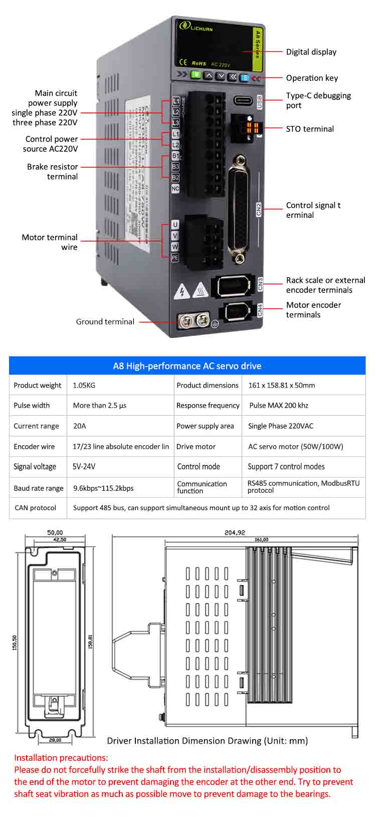 লিচুয়ান এ 8 সিরিজ সার্ভো মোটর ড্রাইভারের সুবিধা:
