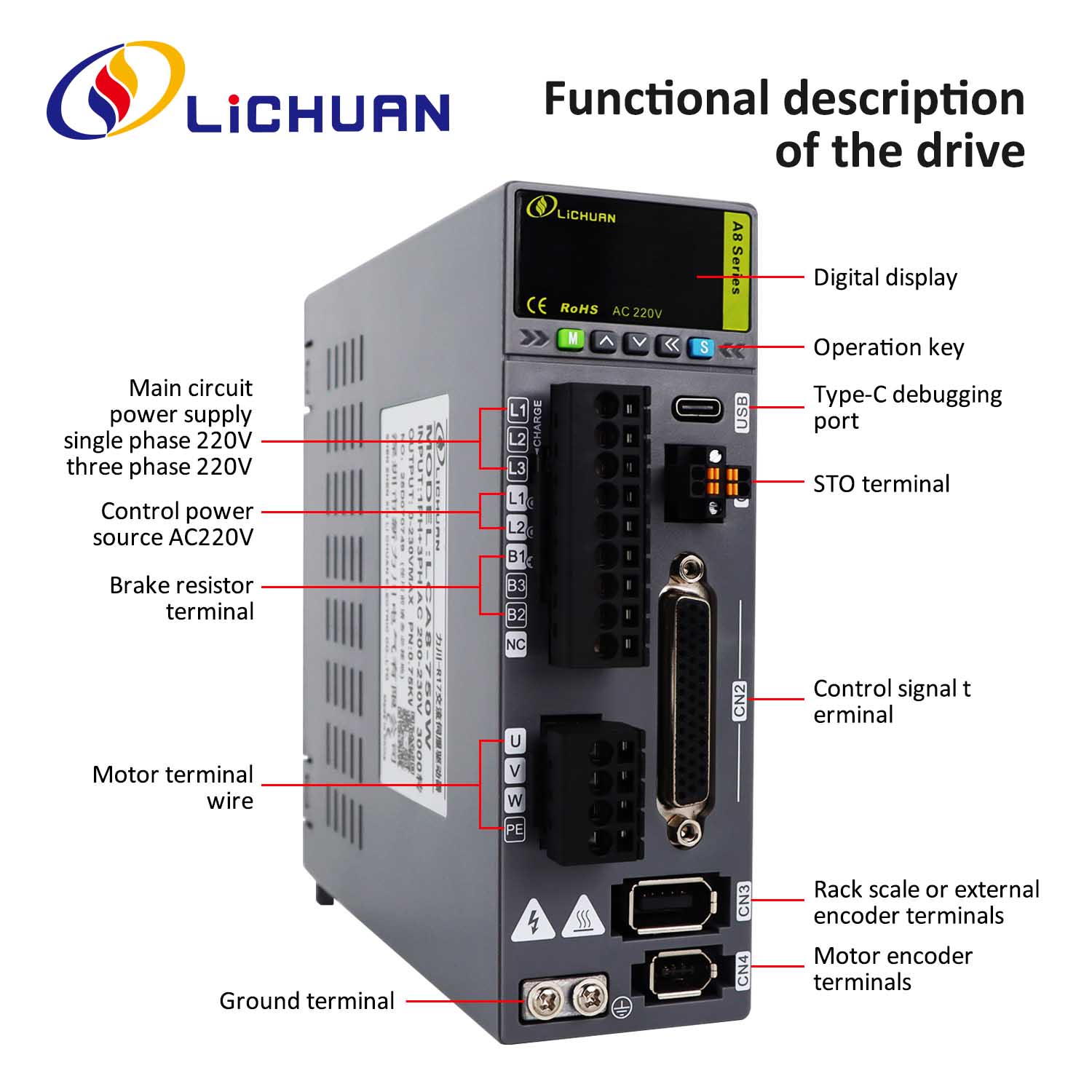 এই সিরিজটি ইন্টিগ্রেটেড STO (সেফ টর্ক অফ) সেফটি টর্ক শাটডাউন ফাংশন সহ একটি উচ্চ-পারফরম্যান্স এসি সার্ভো ড্রাইভ, যা IEC 61800-5-2 নিরাপত্তা মান মেনে চলে এবং জরুরী পরিস্থিতিতে নিরাপদ শাটডাউন অর্জন করতে পারে। সিস্টেমটি একটি সম্পূর্ণ ক্লোজড-লুপ কন্ট্রোল মোড সমর্থন করে এবং উচ্চ-রেজোলিউশন এনকোডার ফিডব্যাকের মাধ্যমে ± এক পালসের অবস্থান নির্ভুলতা অর্জন করে, যা ঘূর্ণায়মান মোটর এবং রৈখিক মোটর অ্যাপ্লিকেশন দৃশ্যের সাথে সামঞ্জস্যপূর্ণ। এটি টাইপ-সি ডিবাগিং ইন্টারফেস দিয়ে সজ্জিত, রিয়েল-টাইম প্যারামিটার কনফিগারেশন সমর্থন করে এবং এতে অন্তর্নির্মিত RS485 কমিউনিকেশন ইন্টারফেস (Modbus RTU প্রোটোকল) রয়েছে এবং বড রেট 9.6kbps~115.2kbps থেকে সামঞ্জস্য করা যেতে পারে। এটি চৌম্বক ক্ষেত্র ওরিয়েন্টেশন কন্ট্রোল (FOC) অ্যালগরিদম গ্রহণ করে, যা উচ্চ-গতিশীল প্রতিক্রিয়া অনুষ্ঠান যেমন নির্ভুল CNC এবং সেমিকন্ডাক্টর সরঞ্জামগুলির জন্য উপযুক্ত।