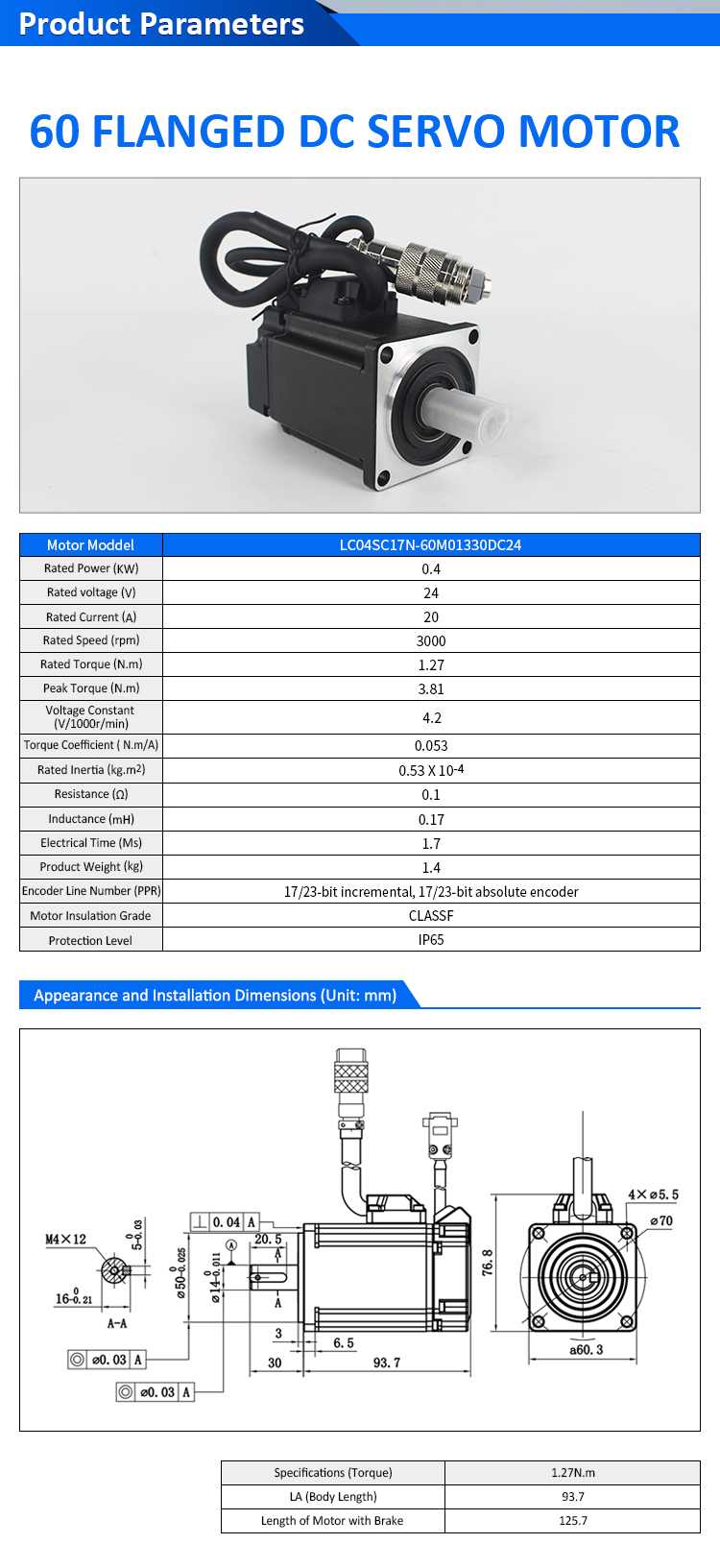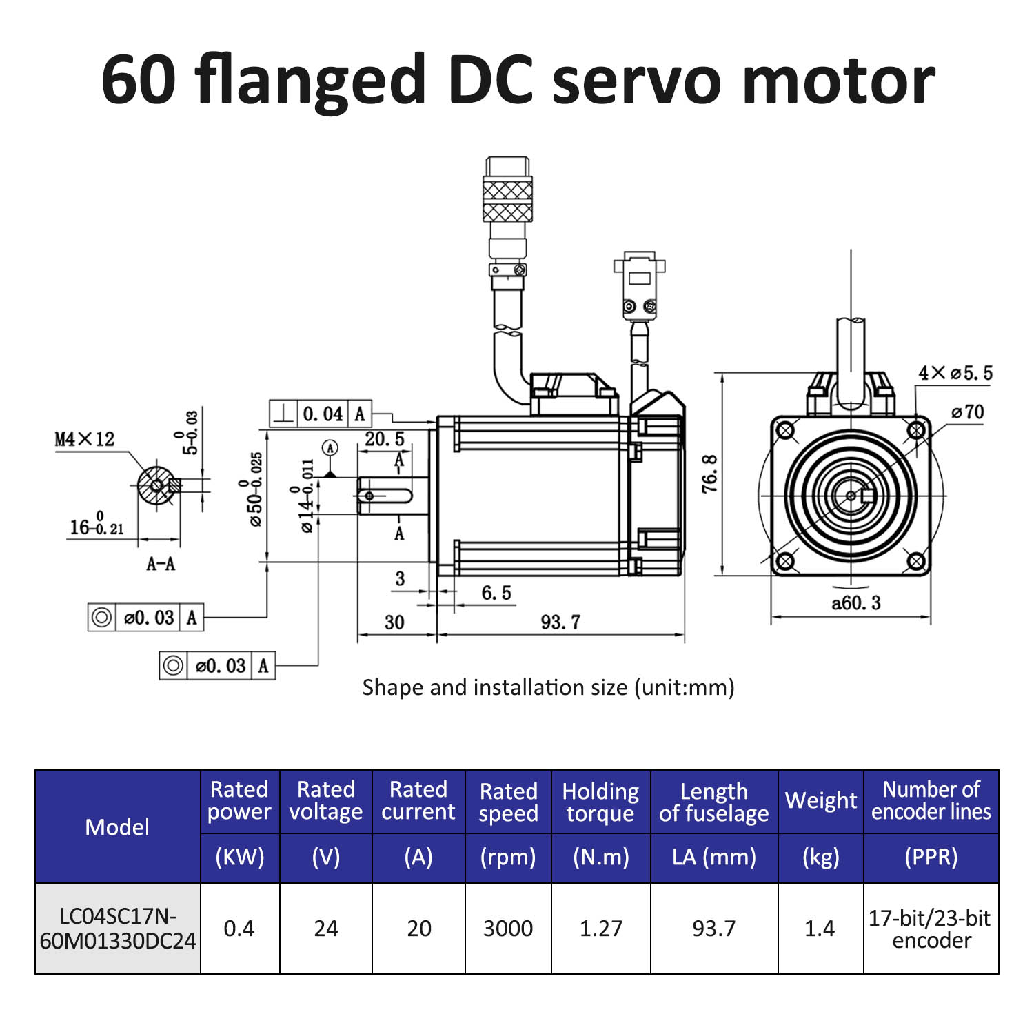 পালস/RS485/CANopen/EtherCAT 60 FLANGED 200W/400W/600W লো ভোল্টেজ ডিসি সার্ভো মোটর ড্রাইভার কিট